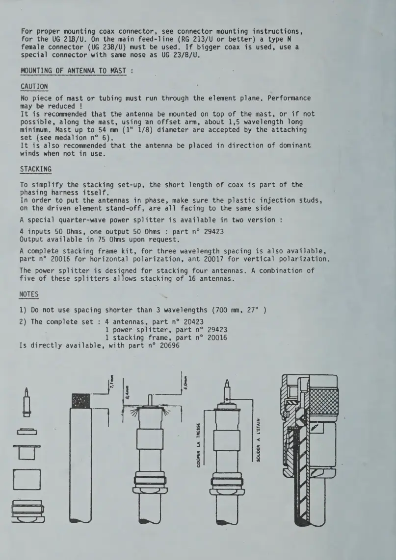 Tonna F9FT - Mounting of Antenna to Mast; Stacking