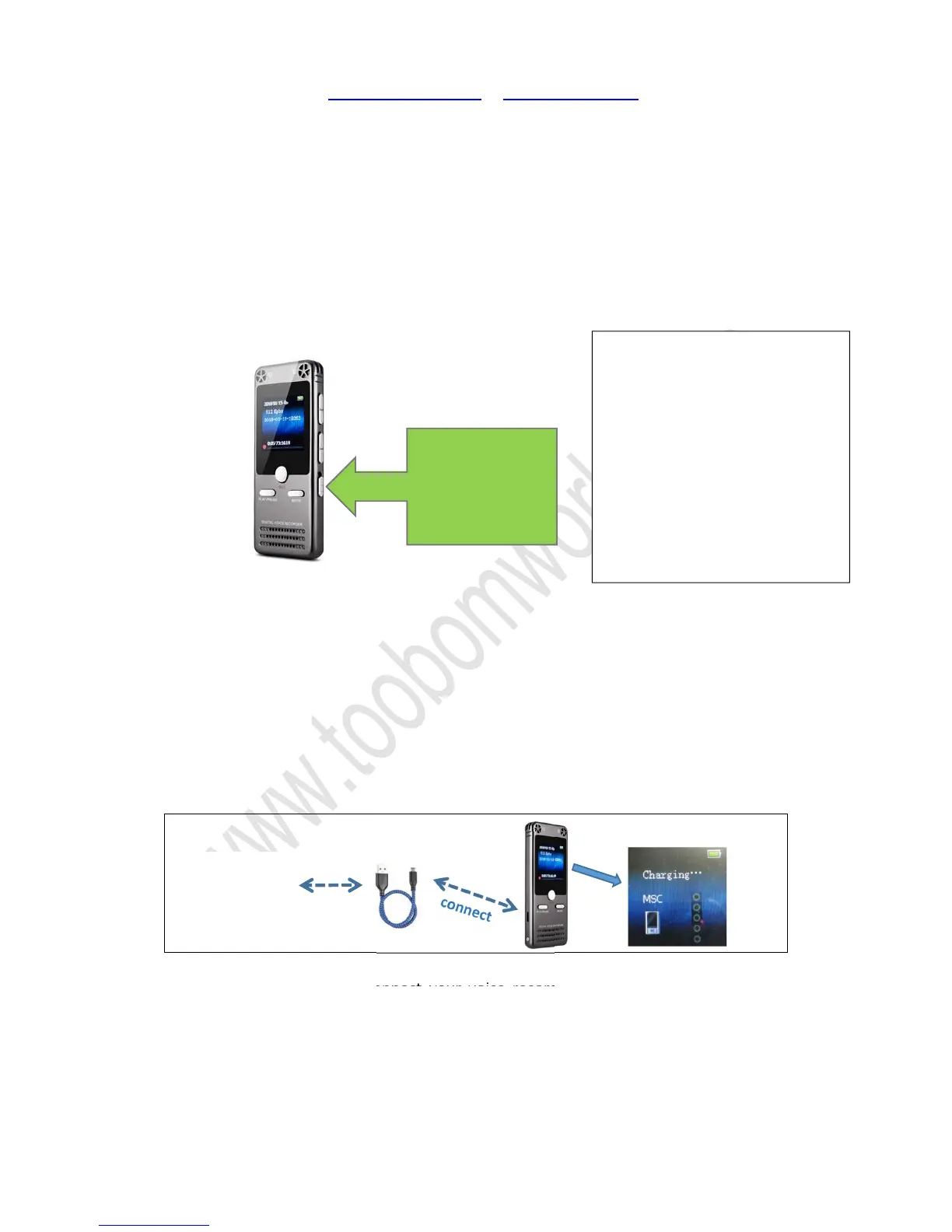 Use the Micro USB cable connect your voice recorder to Computer USB socket to