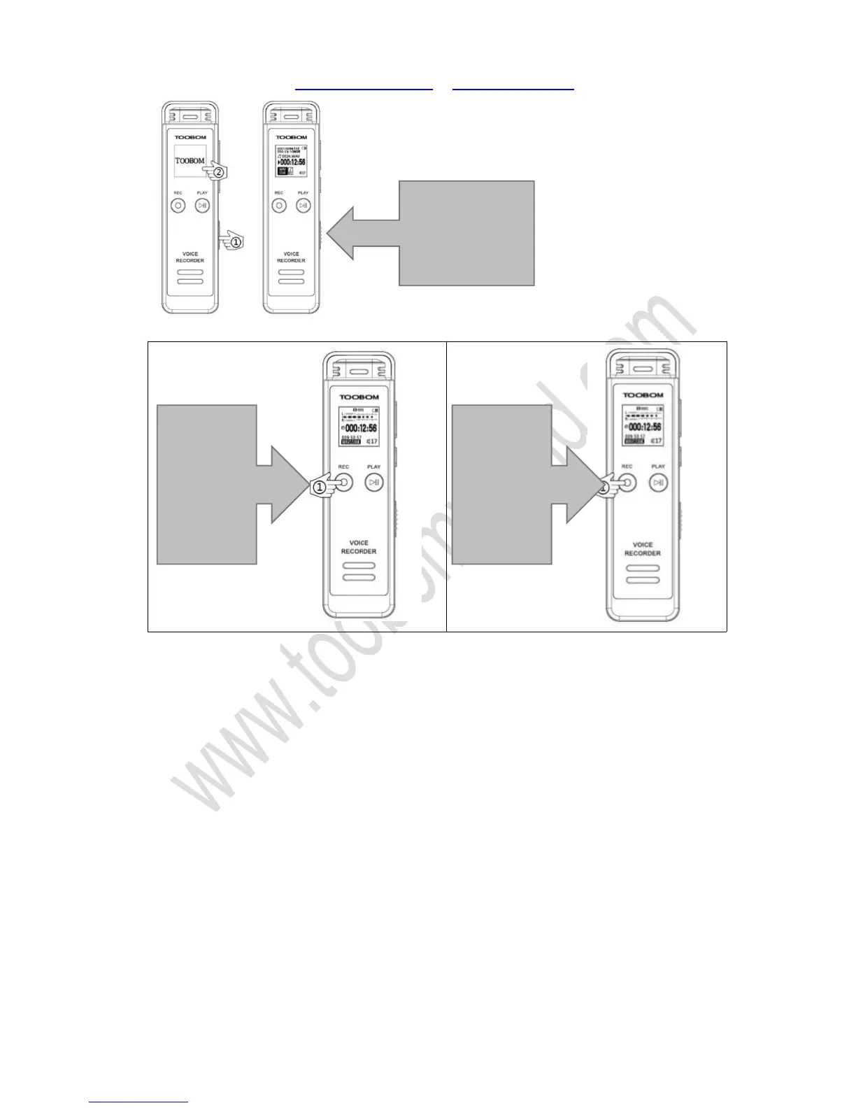 Switch on the voice recorder, press and hold the REC button, it starts to record