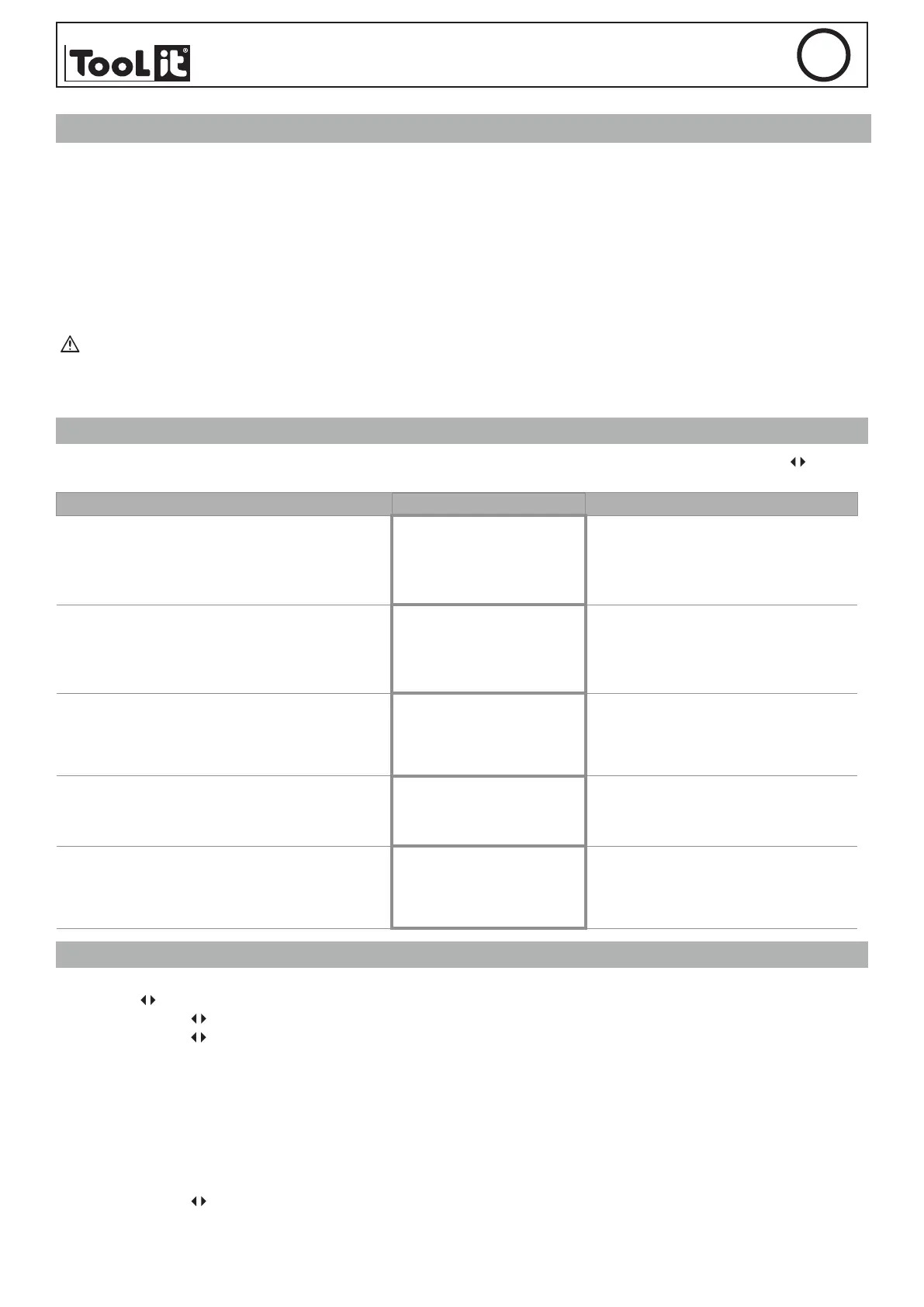 Una volta che i morsetti sono collegati, il tester mostra automaticamente il munu principale Usare le frecce