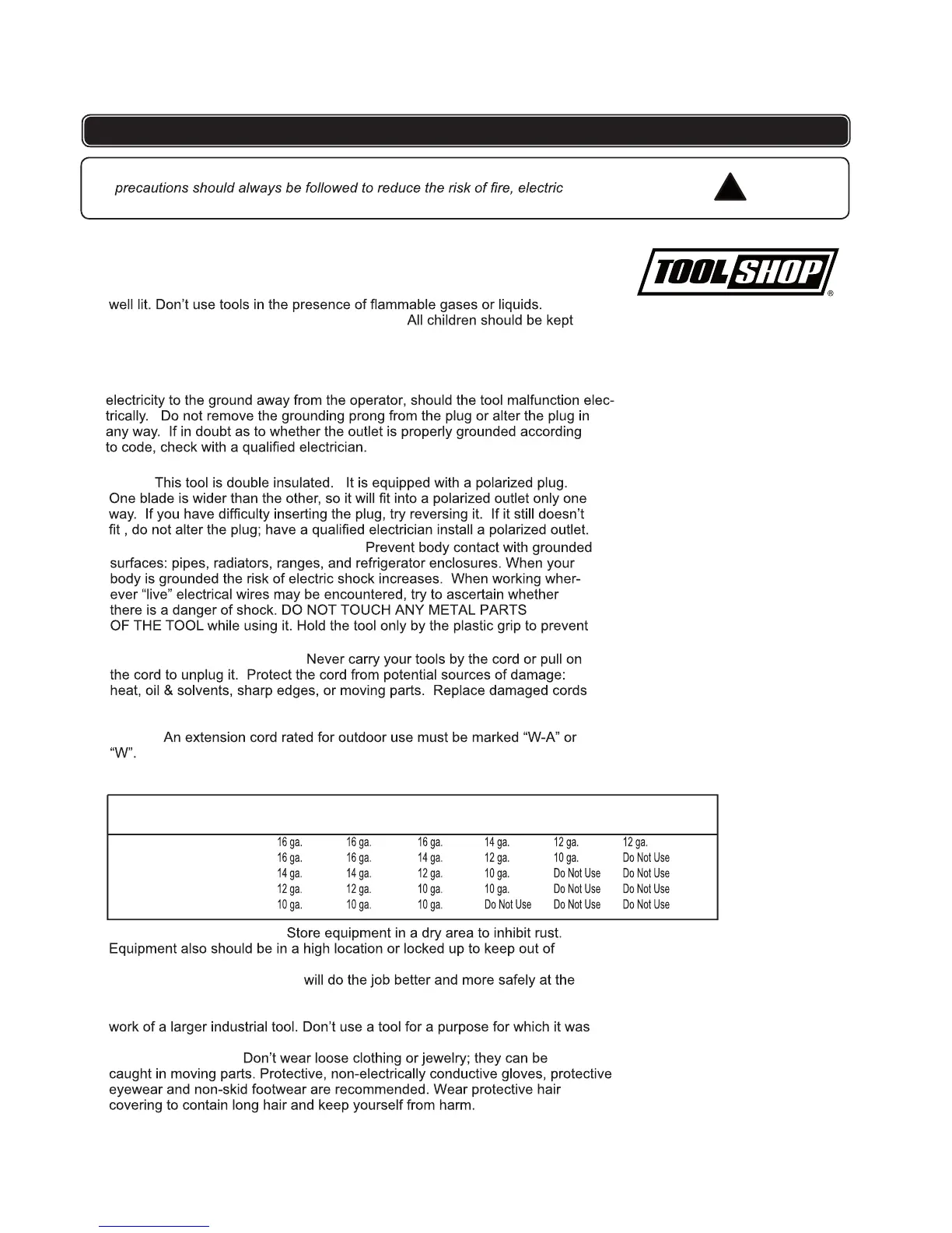 8. WHEN WORKING OUTDOORS, USE AN OUTDOOR-RATED EXTENSION