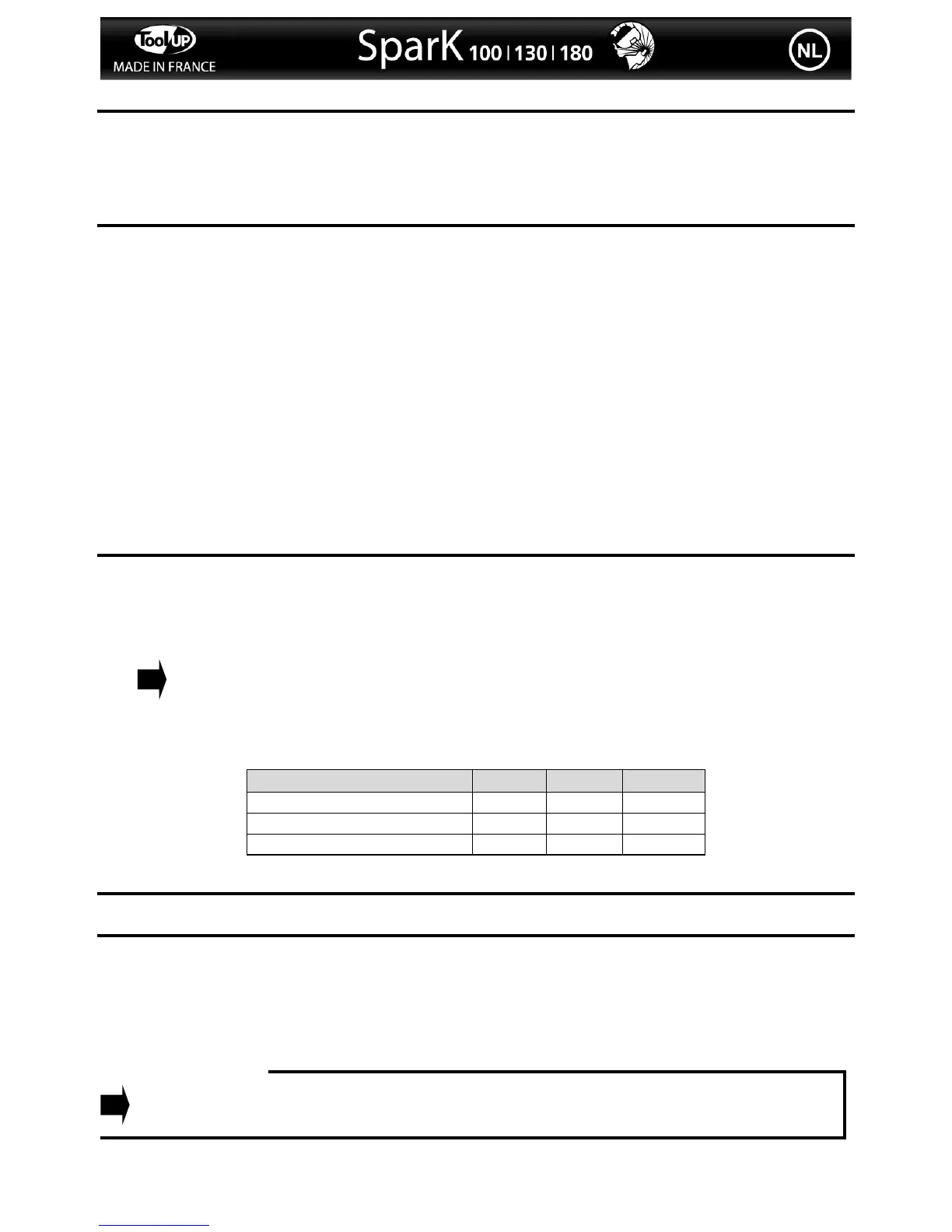 • Voor de SPARK 100, 130 en de SPARK 180: het starten doet zich door het draaien van de potentiometer op de