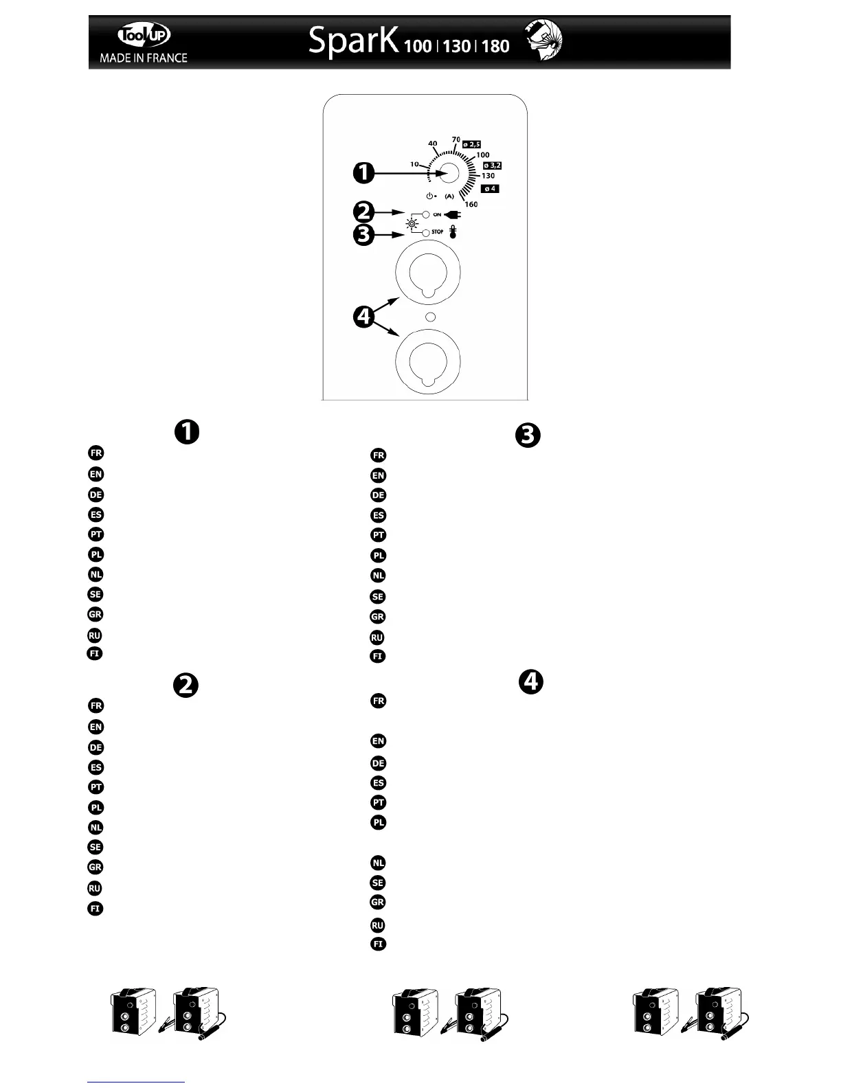 Гнезда подсоединения электрододержателя и кабеля массы.
