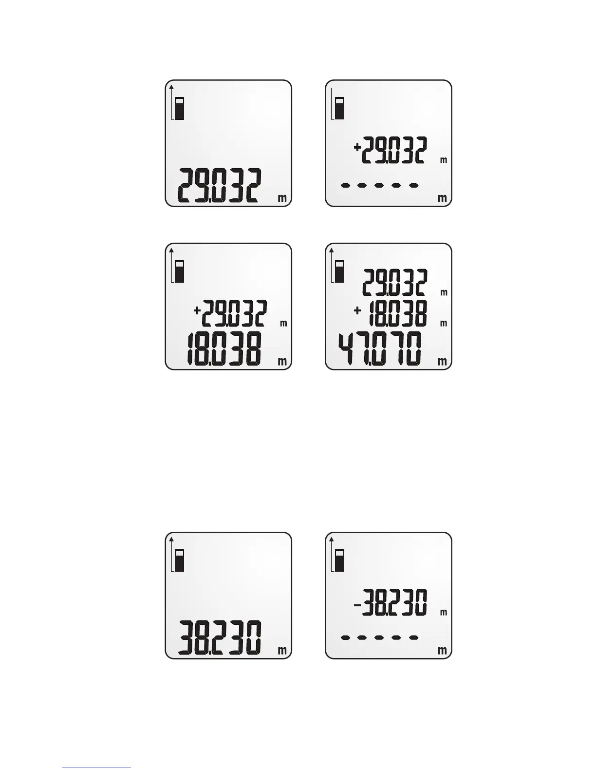 3. Press the button “-“. The difference of the two measured values will
