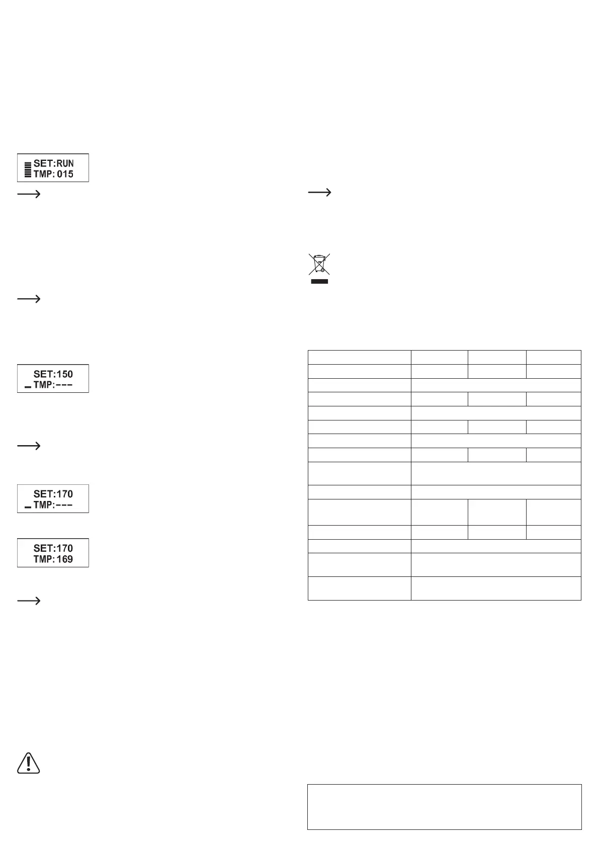 • Die „TMP“-Zeile zeigt drei Striche, die „SET“ Zeile zeigt den Wert des Temperaturreglers -