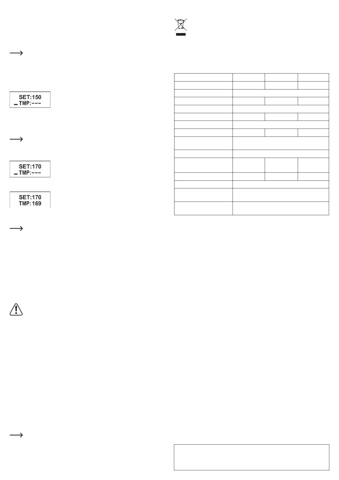 • The “TMP” line shows three dashes, the “SET” line shows the value of the temperature