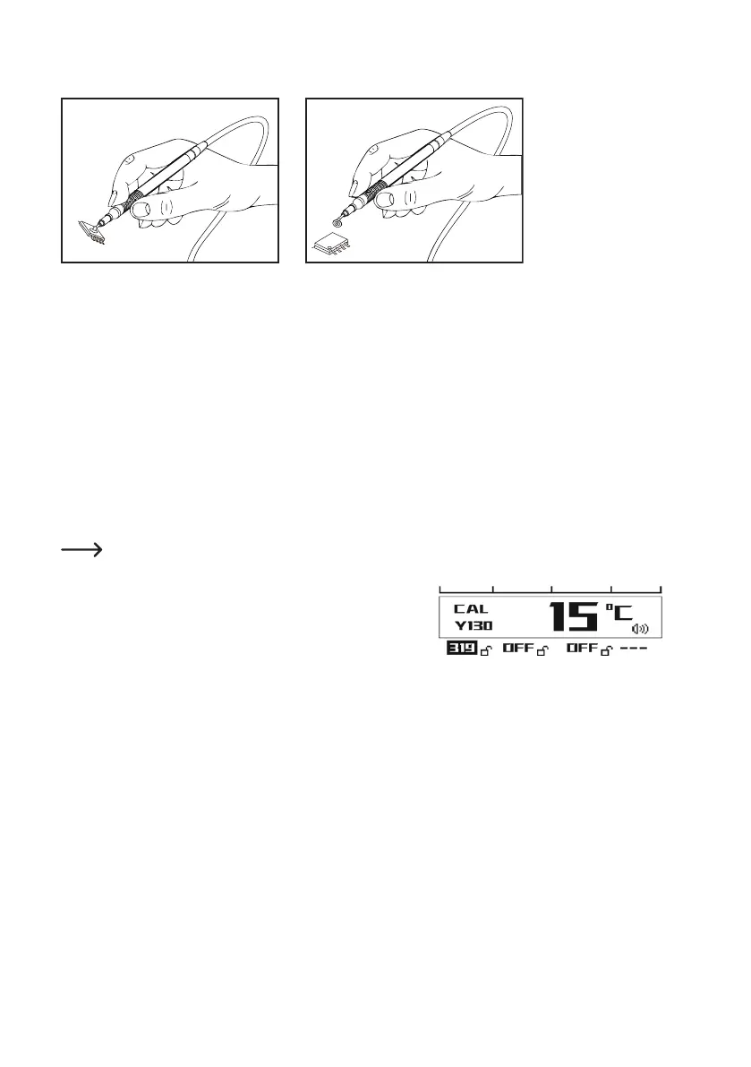 Die Unterdruckpumpe startet erst dann, wenn sich die Entlötpistole auf die eingestellte Temperatur aufge-