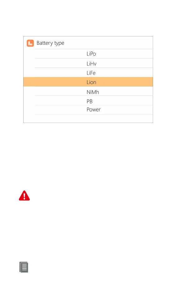 types of batteries: Lipo, LiHV, LiFe, Lion, NiMh, and PB.