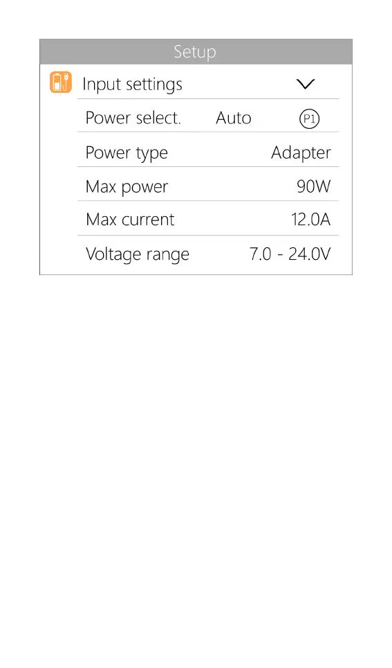 Input settings: Input power related settings,