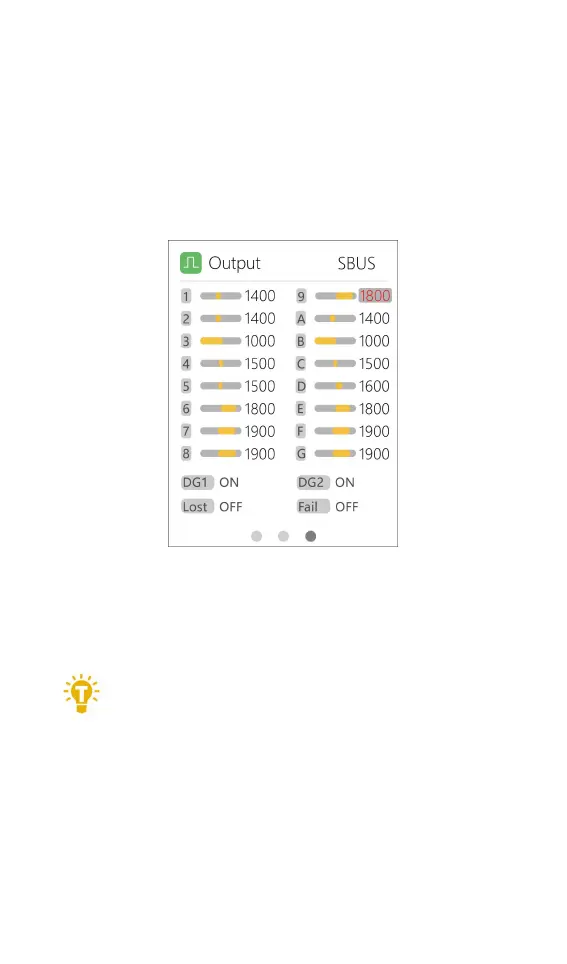 In the SBUS output page, press down on the roller for 2