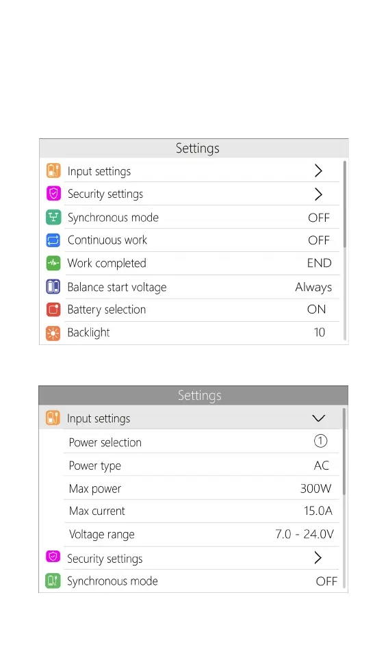 Input settings: Input power related settings, short press
