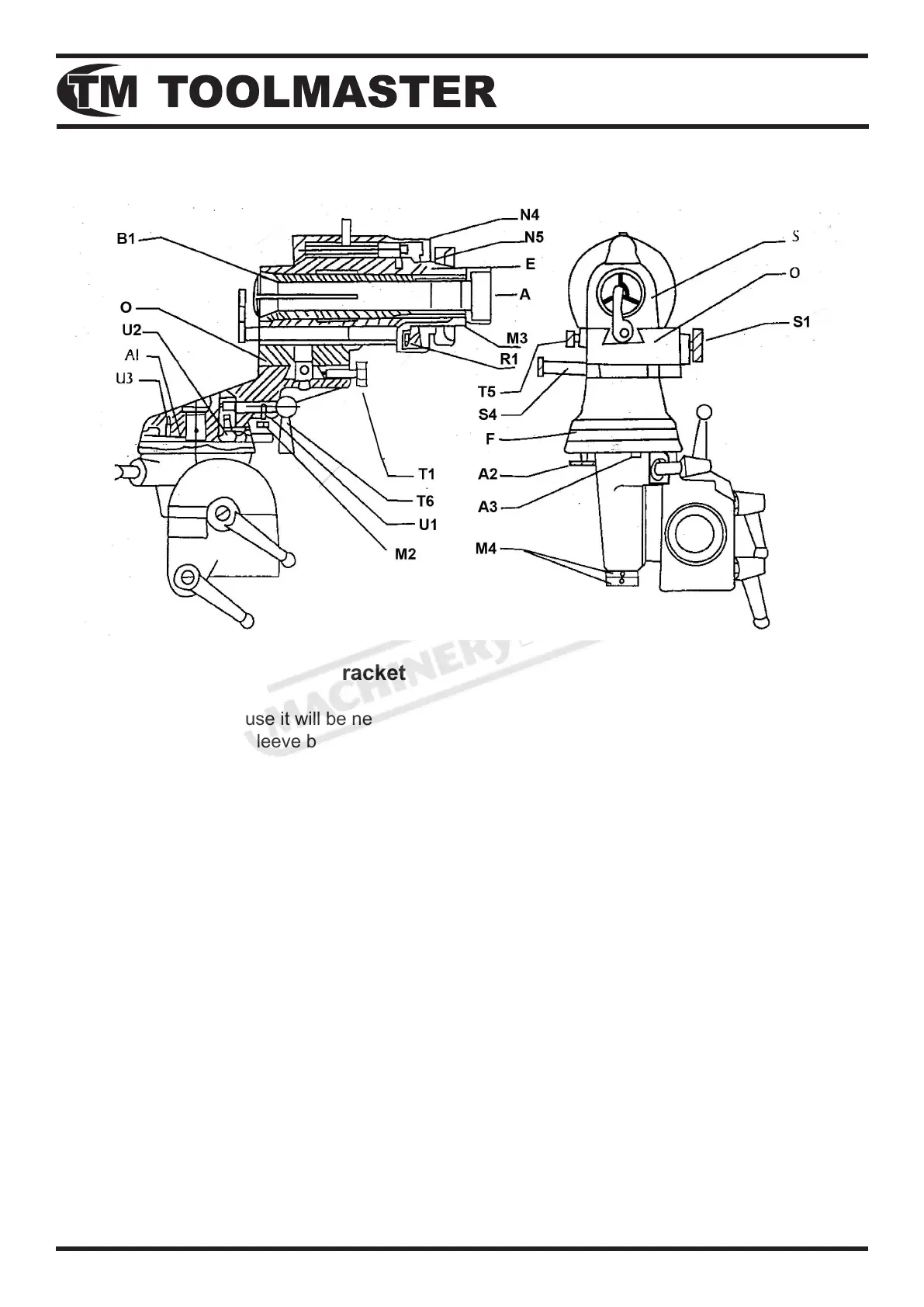 Release clamping screw T5 and remove the longtitudinal adjusting screw. Remove the index head