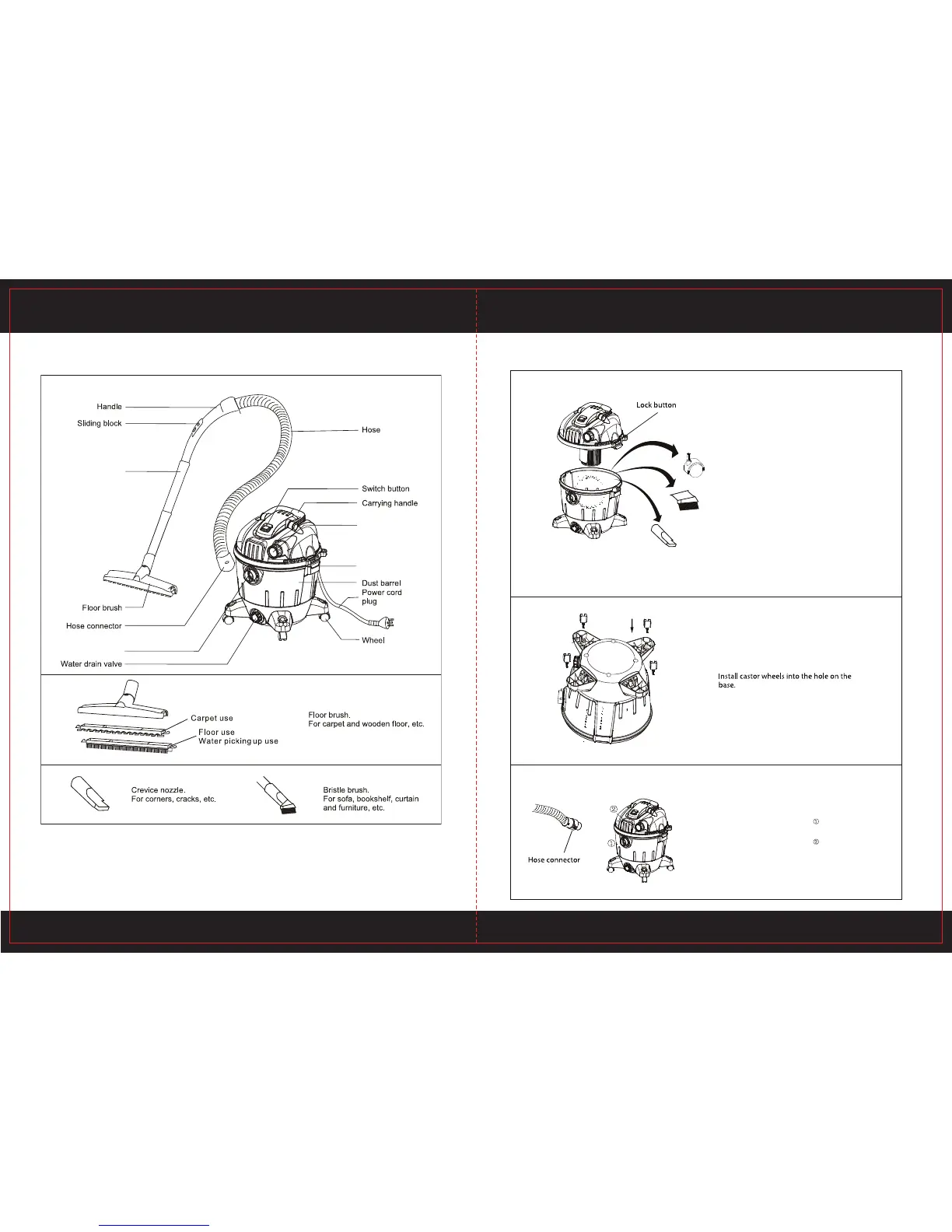 ToolPRO 35L - PARTS NAME; OPERATION METHOD; Opening Housing and Removing Accessories; Installing Castor Wheels