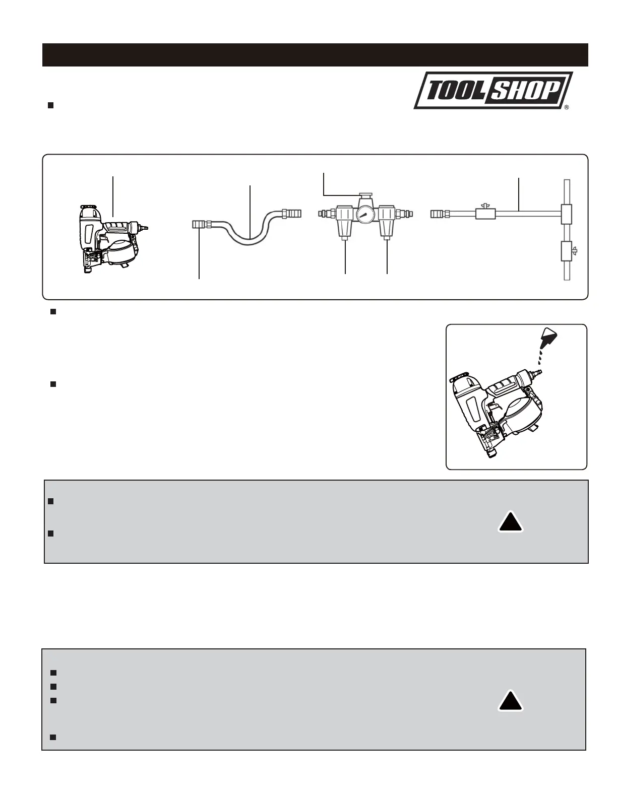 Air fitting: The air nailer should be equipped with a 1/4” NPT male “ quick