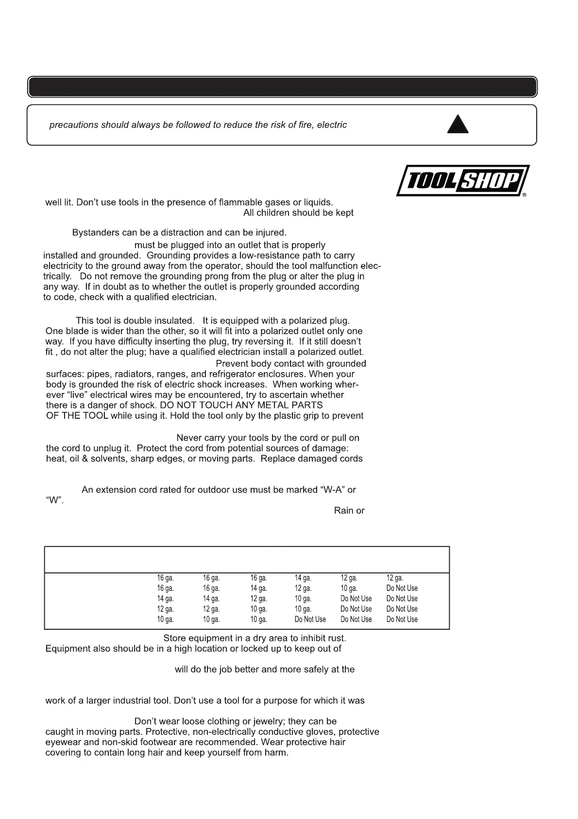10. ENSURE THE EXTENSION CORD YOU USE IS OF SUFFICIENT GAUGE