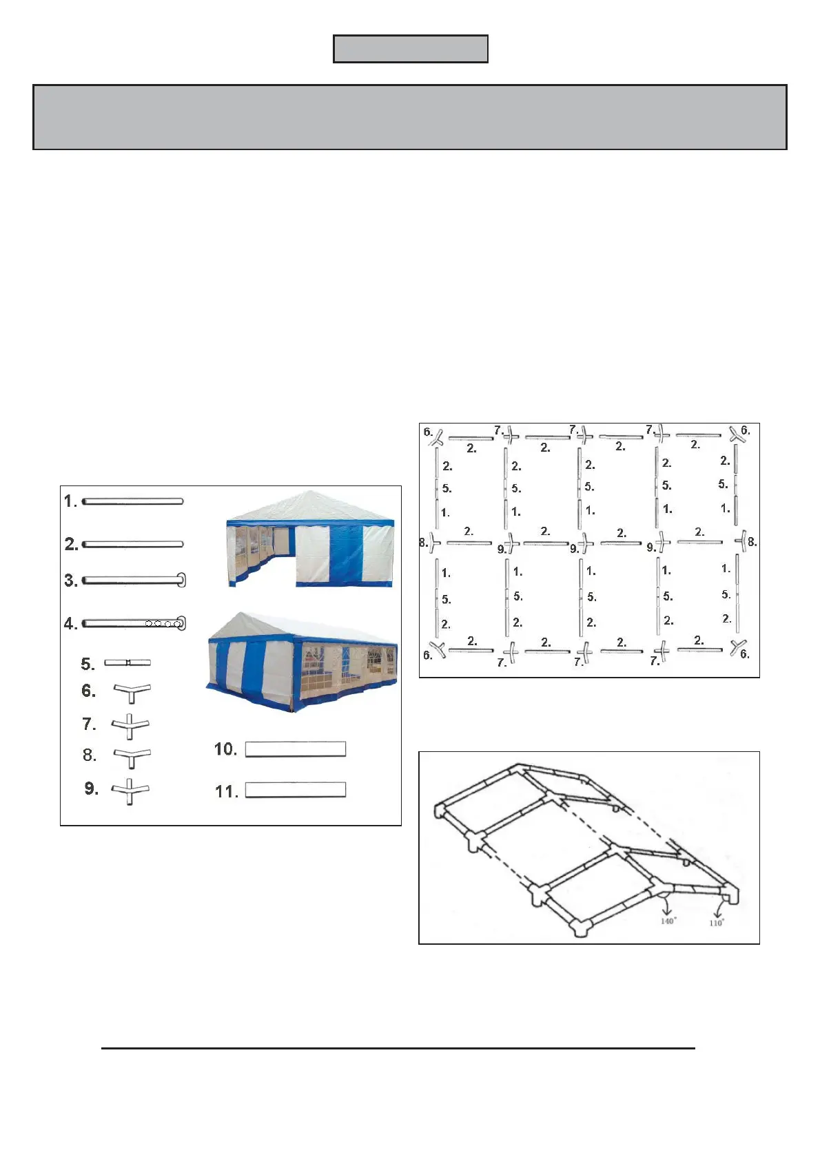 Tent poles:1.45 mm steel tubing, 38 mm diameter