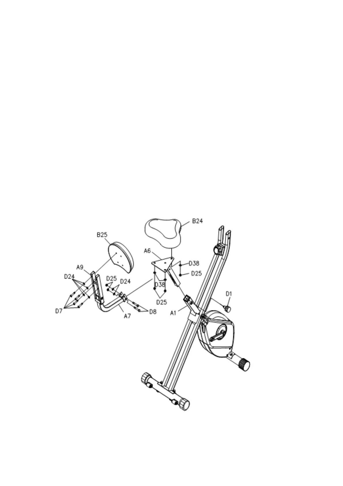 STEP 4: Attach the Seat (B24) to the Seat Post (A6) with Nylock Nuts (M8) (D25) and Washer
