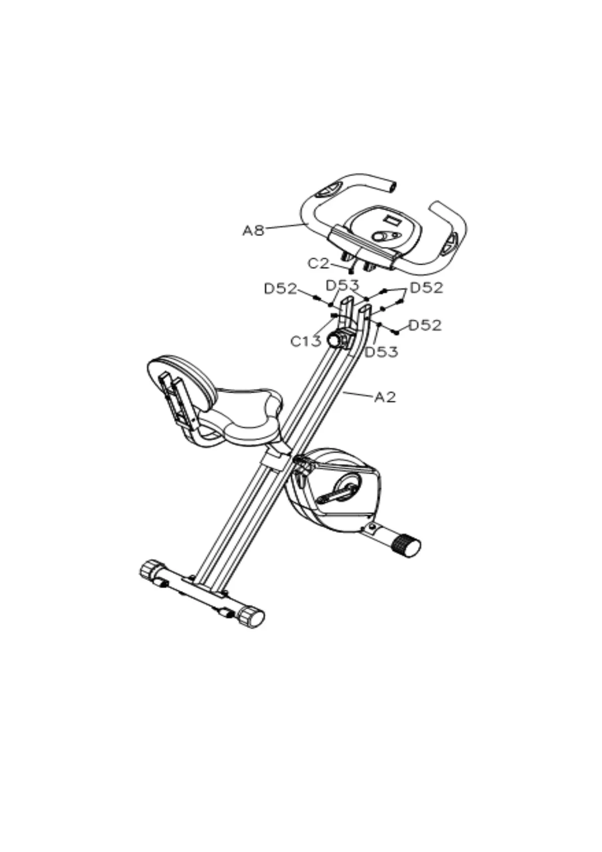 STEP7: Insert the Handle Bar (A8) into the Rear Frame (A2) and securing by using the Bolt,