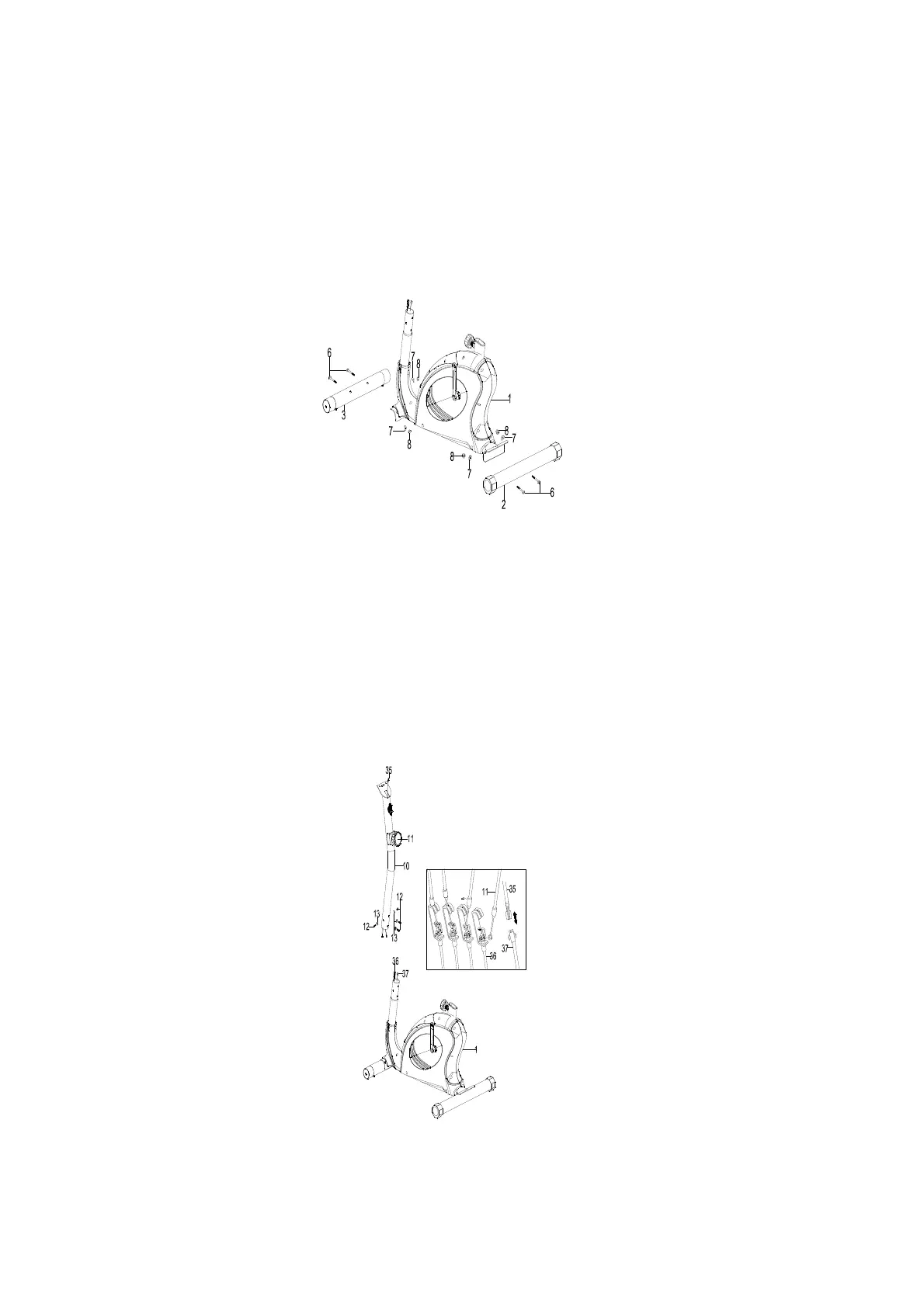 cable (36). Insert front post (10) into main frame (1) and tighten with 4 sets of allen bolt