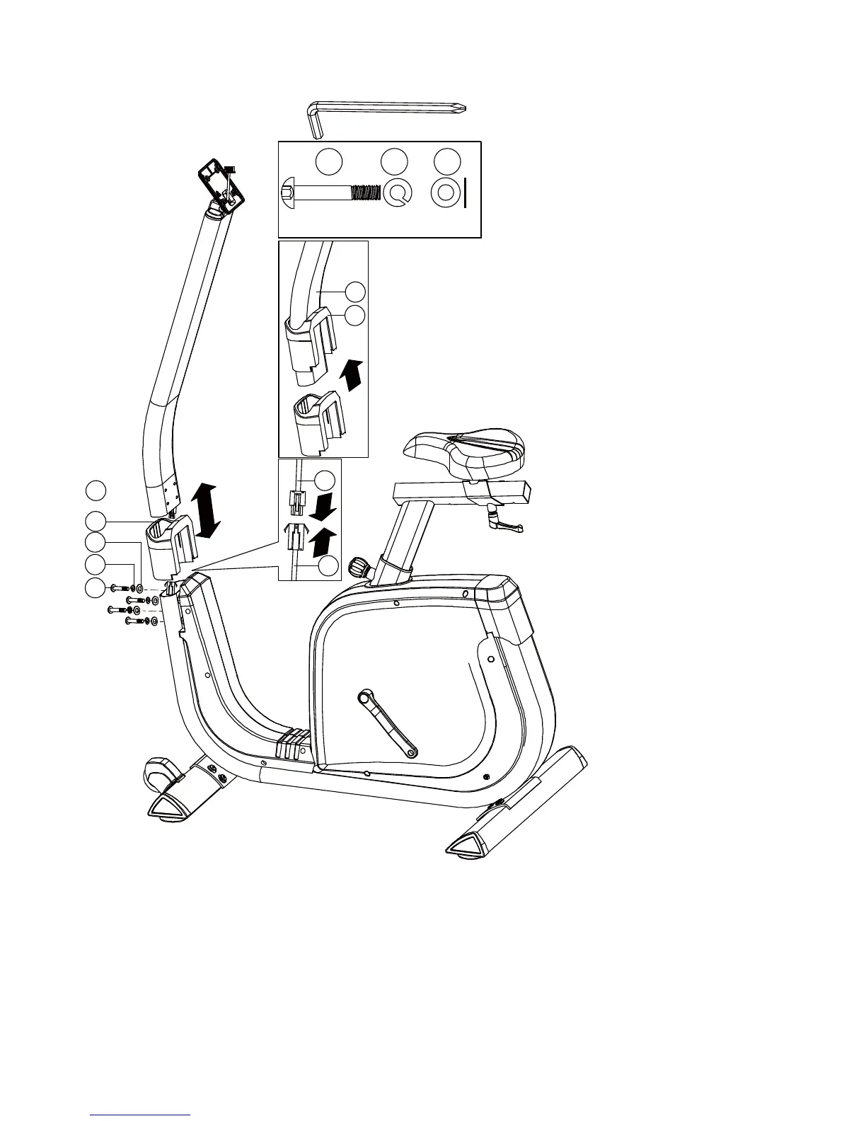 3) Insert the handlebar post (29) on the main frame and tighten it by using the flat