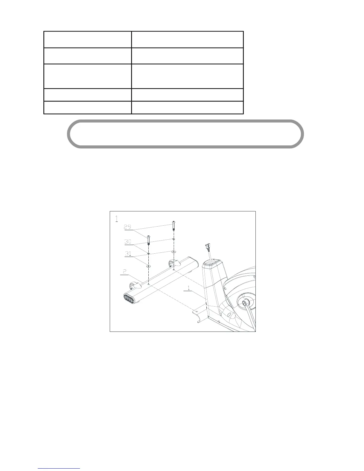 Step 1: Attach the front stabilizer (2) to the main frame (1) with flat washer(31), spring