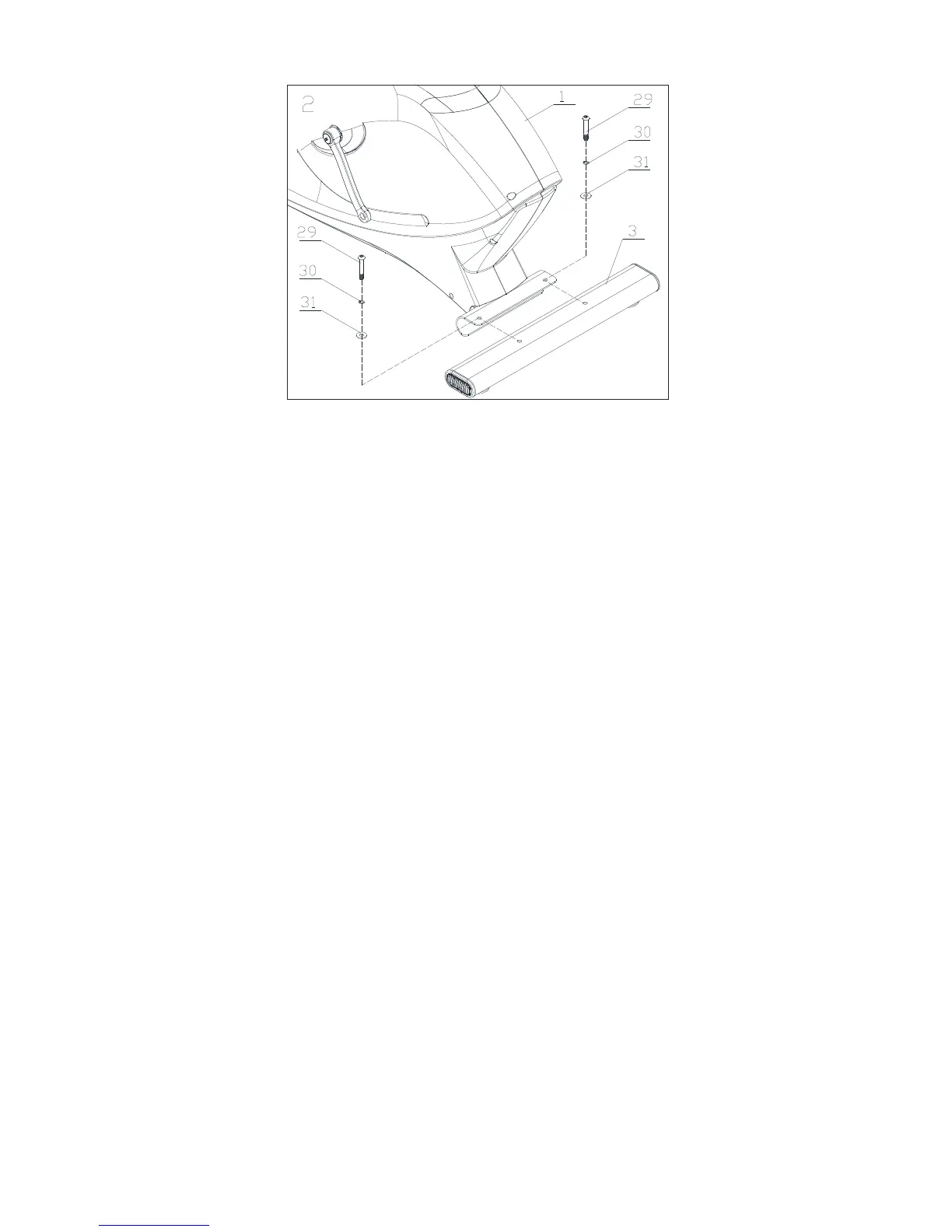 3. Attach upper upright post(4) to the main frame(1) with Curved washer( 33), spring