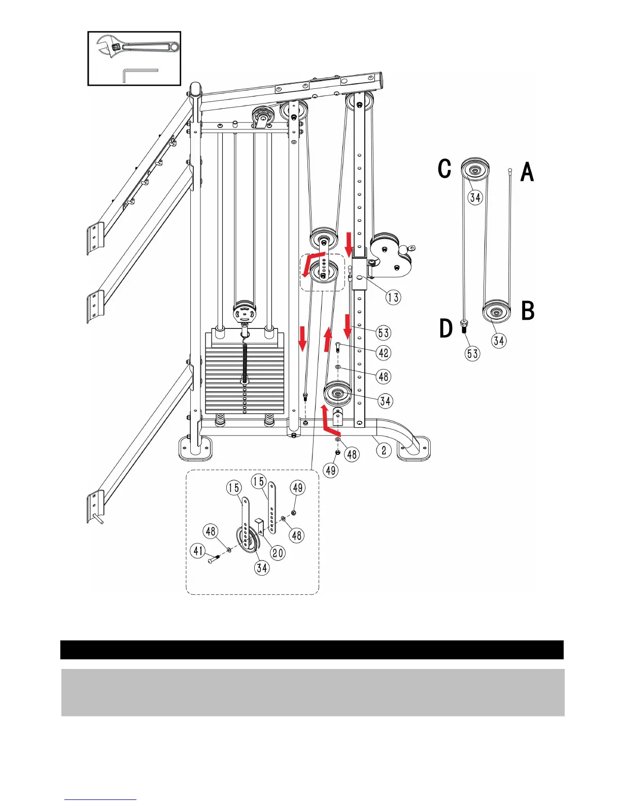 Repeat step 13 to assemble the left Adjustment Cable (53).