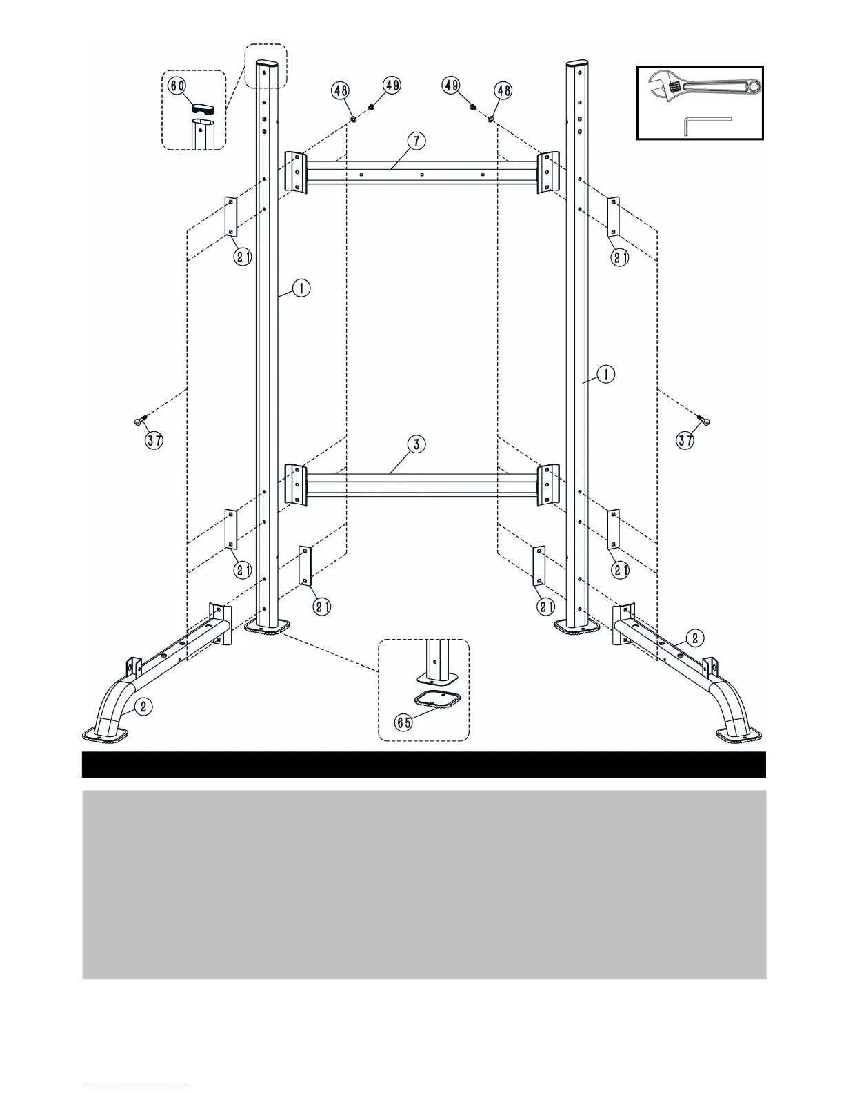 1. Attach 2 x Base Frame (2) and 2 x Flat Bracket (21) to 2 x Rear Vertical Support (1) respectively using 2