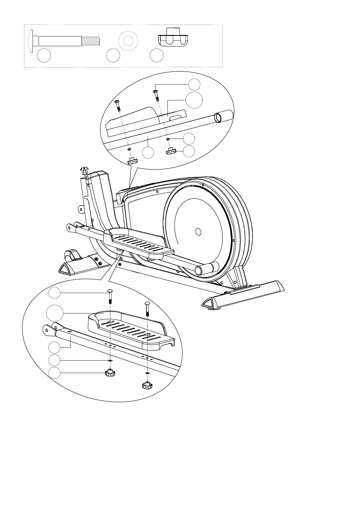 1) Assemble the left and right pedal (21L&21R) on the pedal supporting tube (11) by