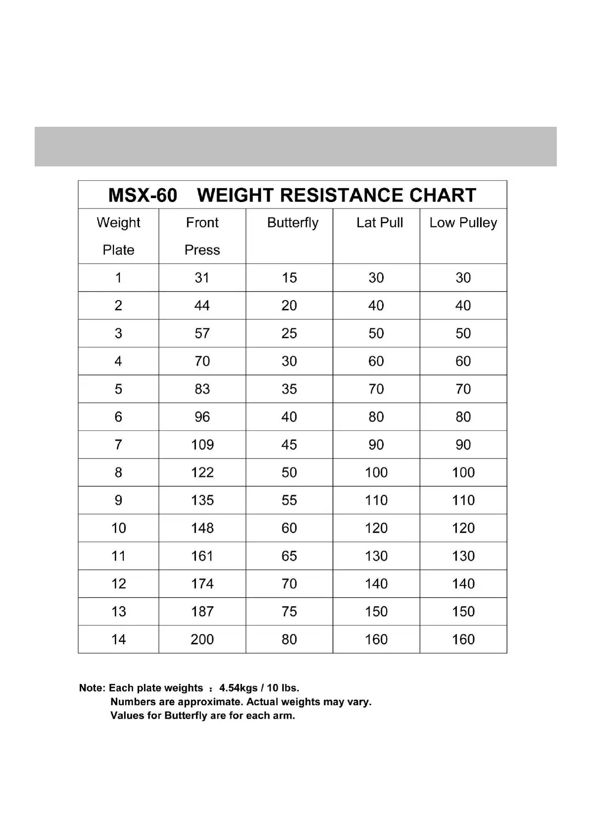 TOORX MSX 60 - Resistance Chart