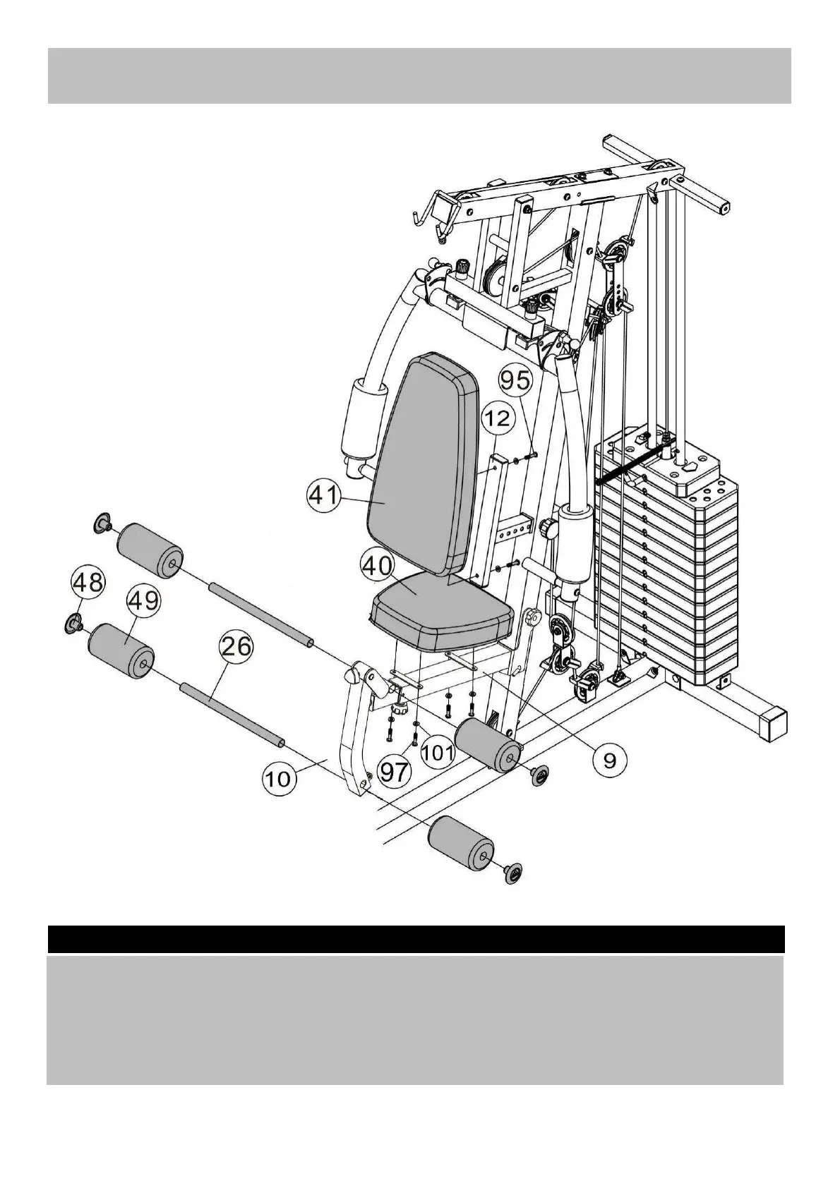 (B) Place the seat pad(40) onto the seat pad support (9), Sucure them with 4pcs Ø8 washer(101) and