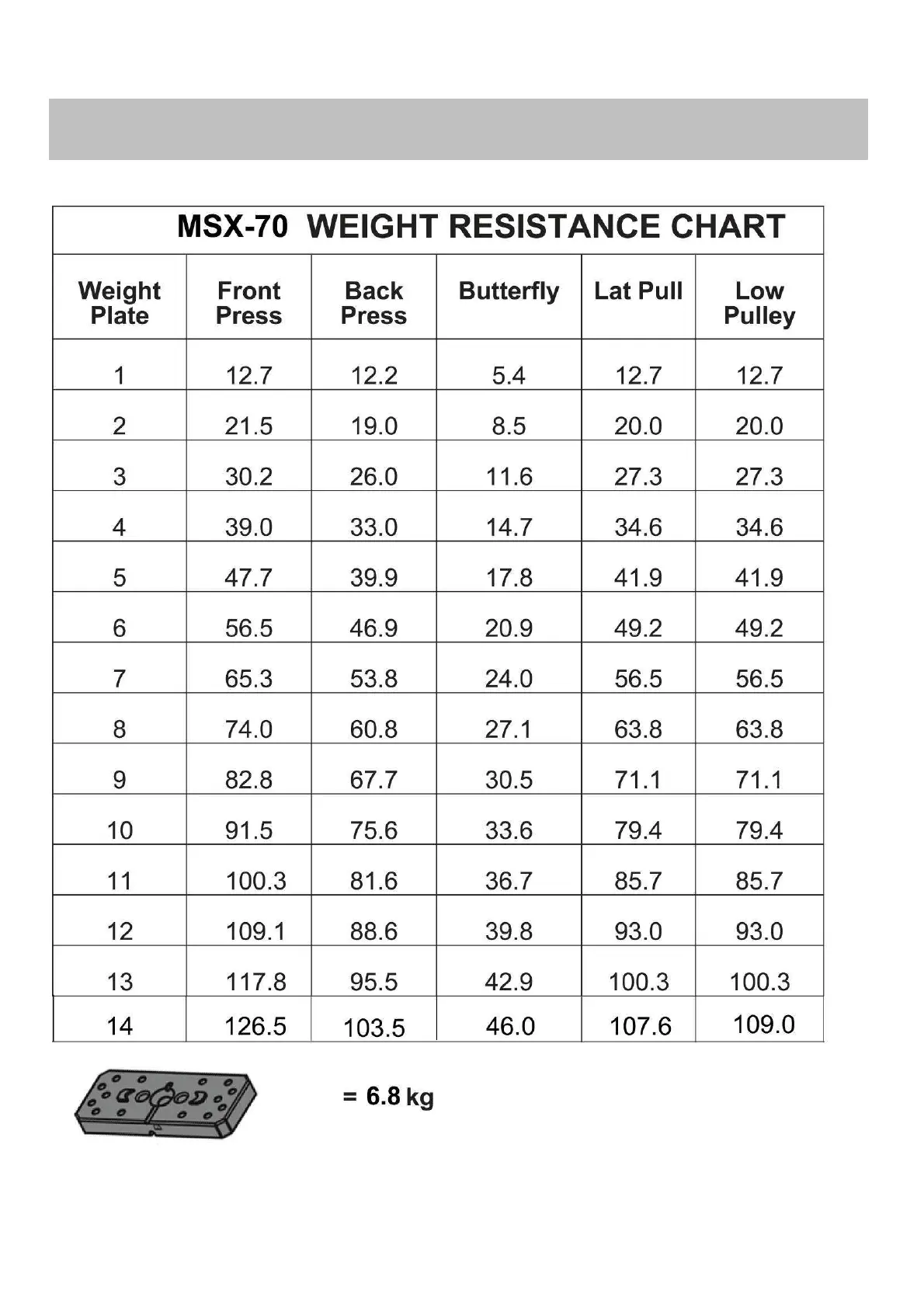 TOORX MSX-70 - Resistance Chart
