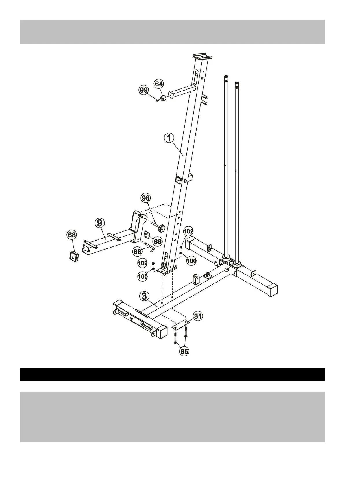 them with 2 pcs M10×85 carriage bolts(85), one pc bracket (31),2pcs 2pcsØ10 washer(100) and 2