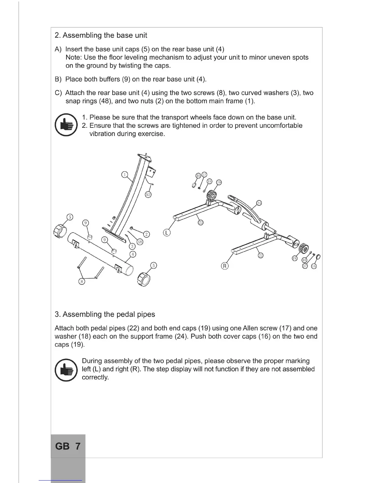 TOORX STEPPER FORCE - Base Unit and Pedal Pipe Assembly; Assembling the Base Unit; Assembling the Pedal Pipes