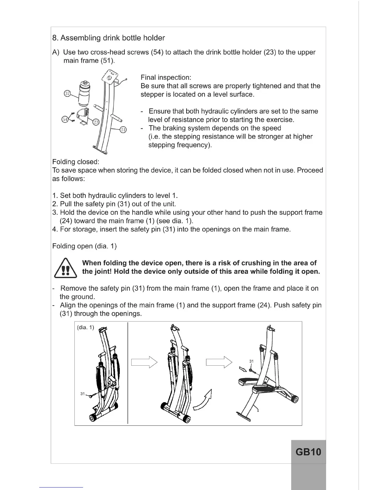 TOORX STEPPER FORCE - Final Assembly and Folding; Device Folding Mechanism