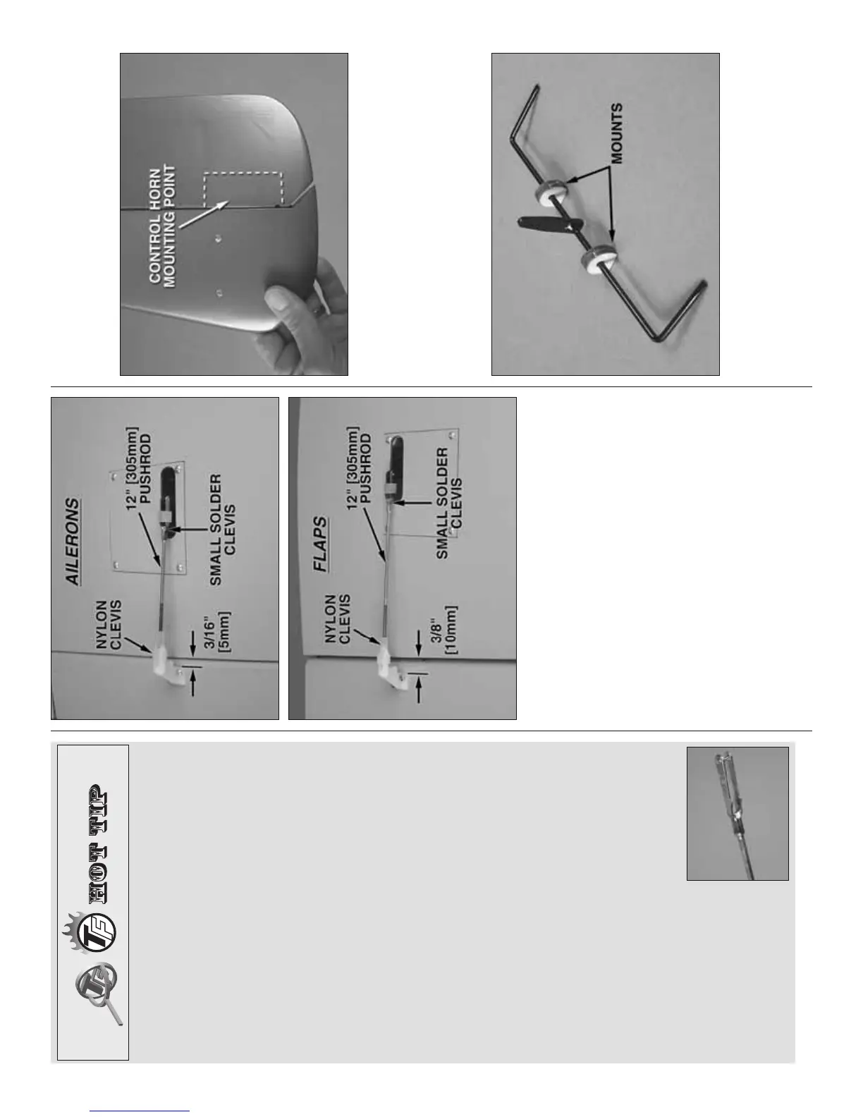 of the fl ap control horns is set back 3/8" [10mm] from