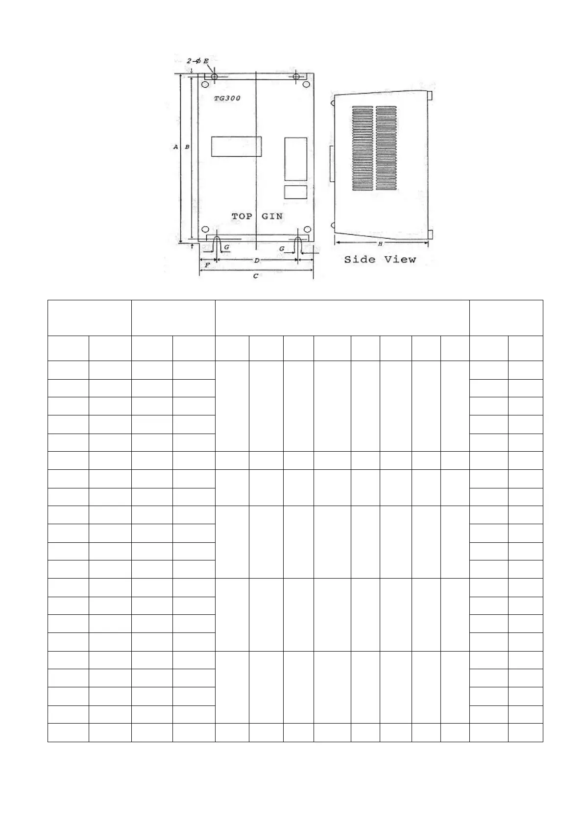 TG-300 TG-250 Dimensions(mm)