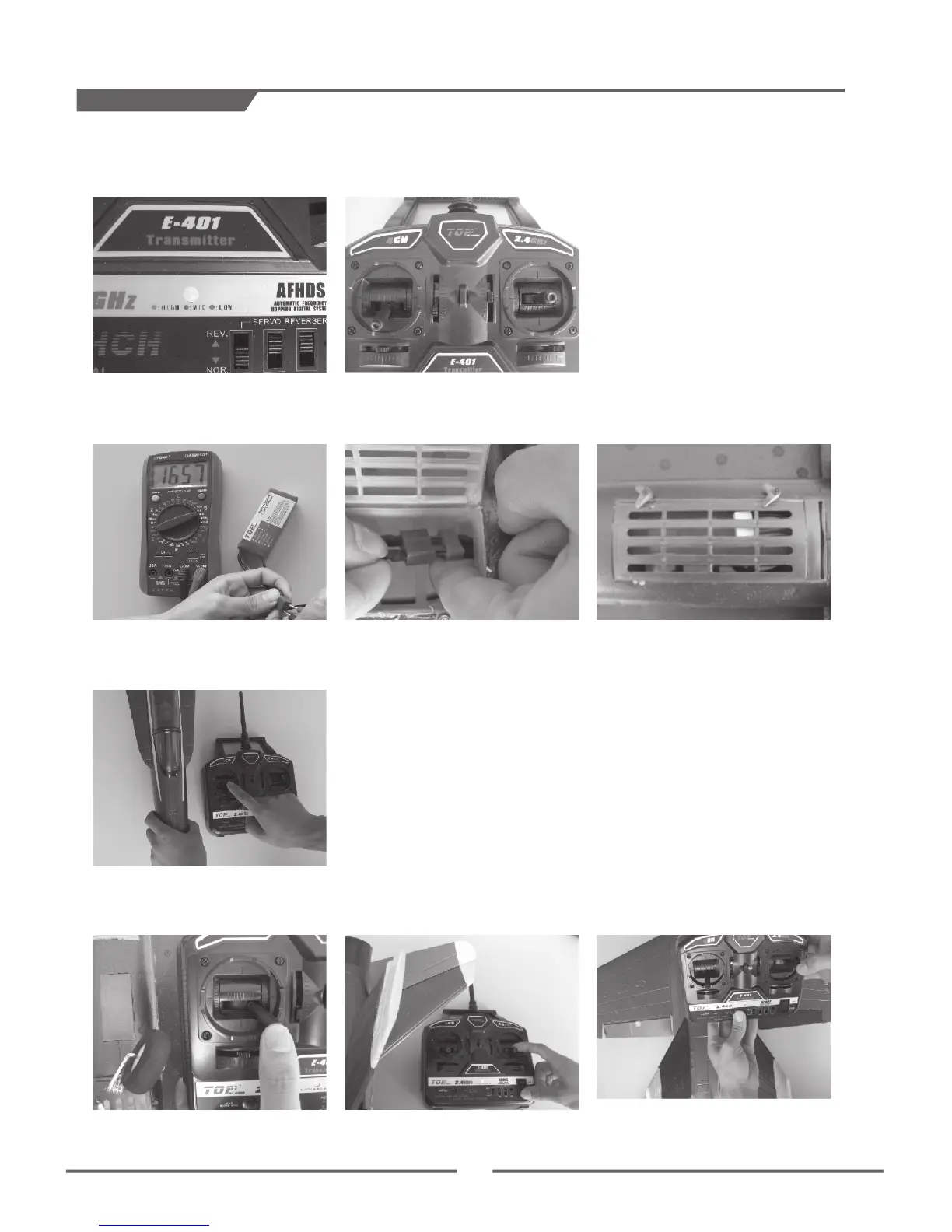 4.Please check the control surface and front wheel can work or not.Do not make it reverse, and make