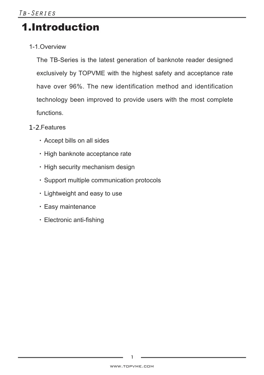 The TB-Series is the latest generation of banknote reader designed