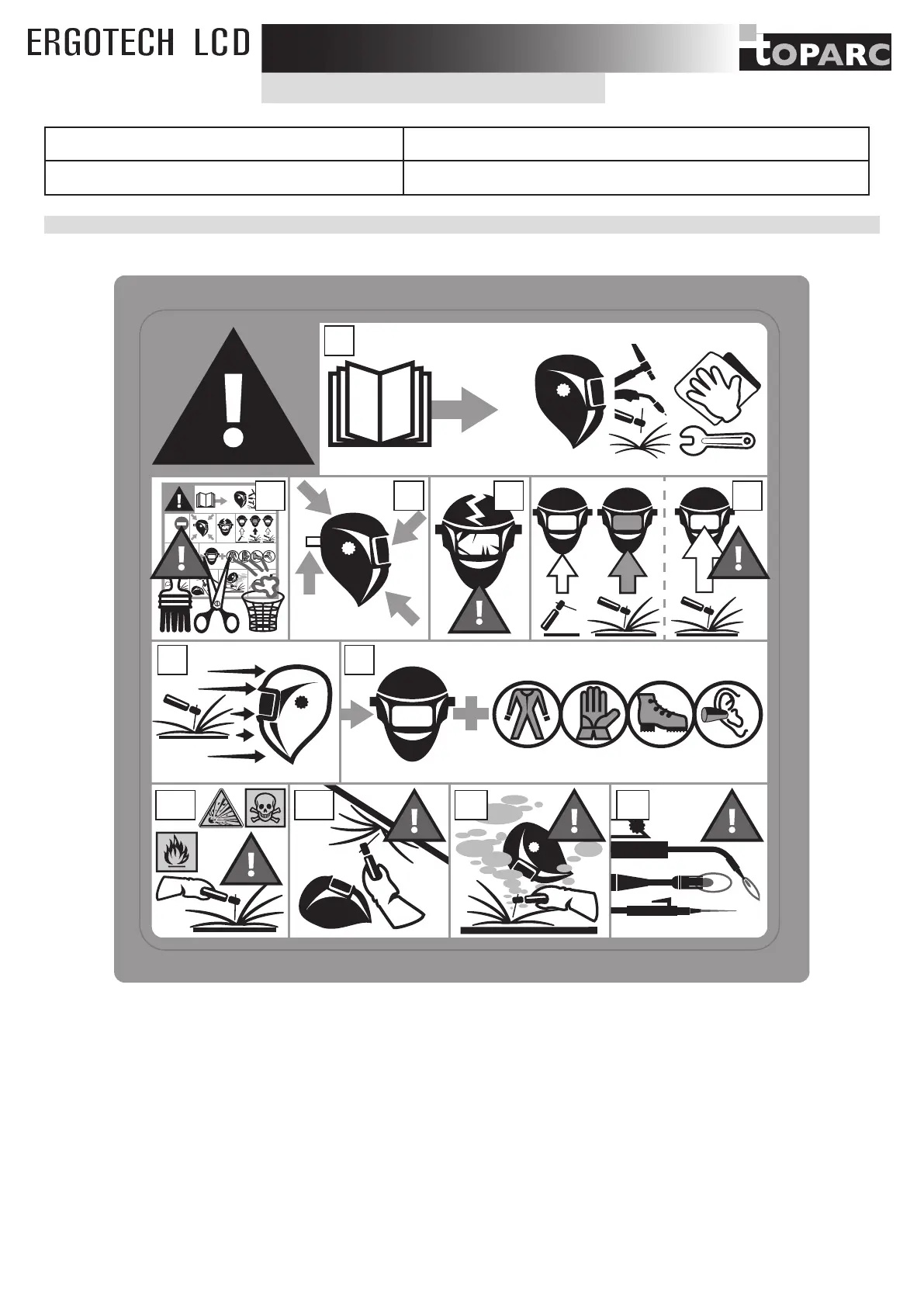 Cette étiquette est afchée à l’intérieur du masque de soudage. Il est important que l’utilisateur comprenne la signication des symboles de sécurité. Les numéros de la