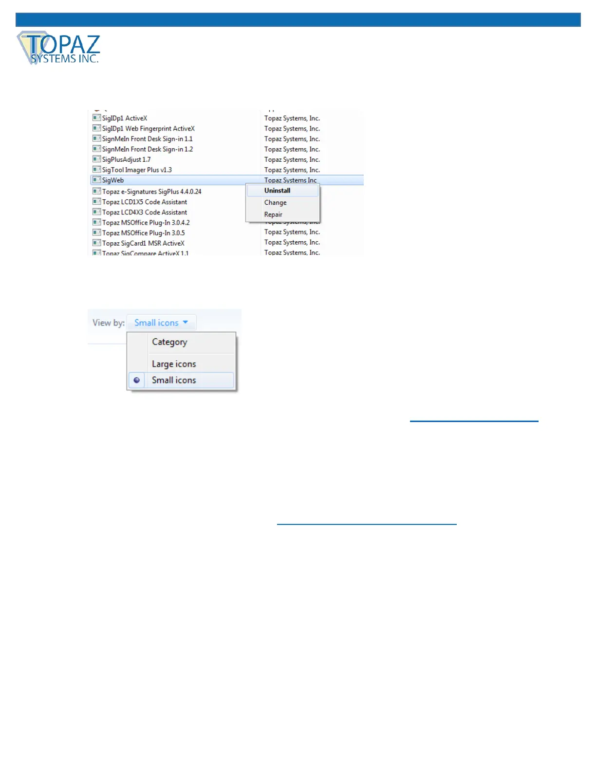 3. Under “Start” “Control Panel” “Programs and Features”, right-click on “SigWeb”,