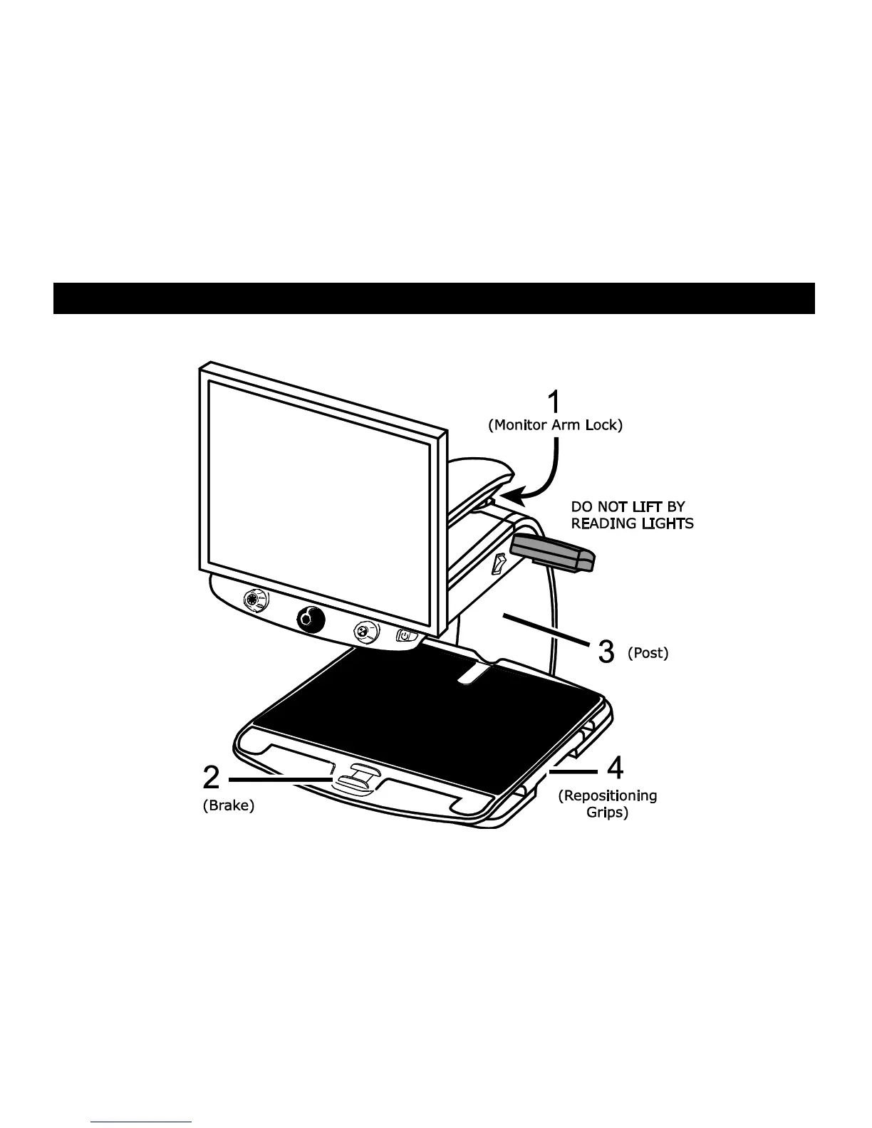 Use this image and the text on pages 2 through 3 to lift, carry, and position the TOPAZ® XL.