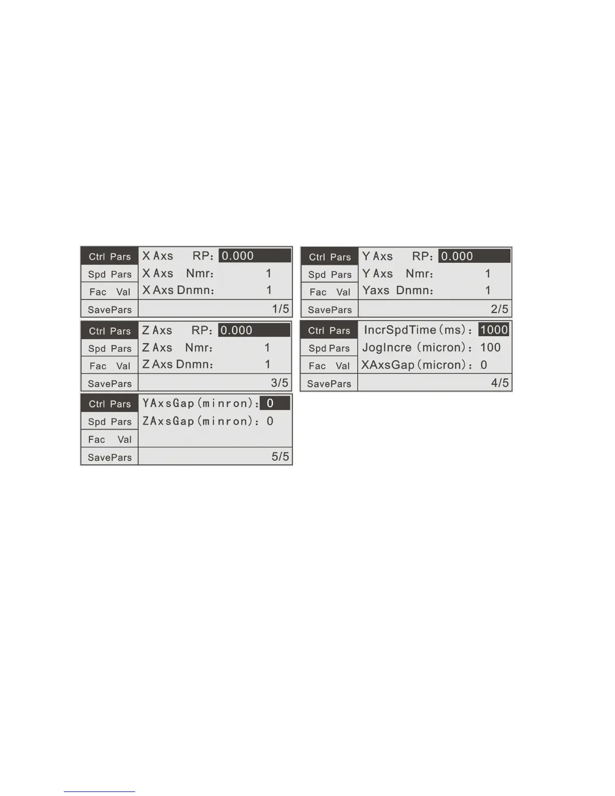 the left F1 key to enter the CtrlPars(Control parameters) interface.