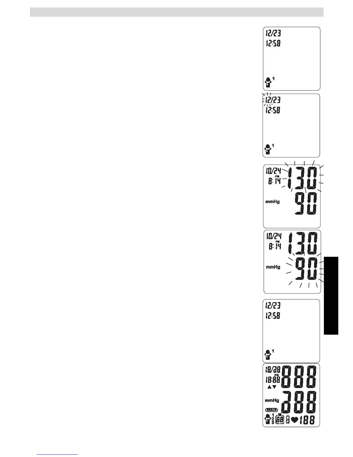 • Stisknte tlaítko Memory. Zane blikat mezní systolický tlak.