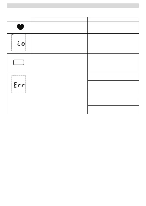 Display-Symbol Ursache (Beschreibung) Abhilfe