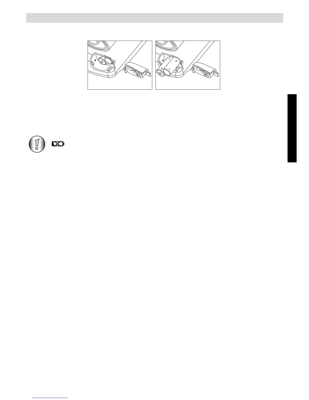 •Insira 2 pilhas AAA Alcalina. Respeite a polaridade tal como se ilustra.