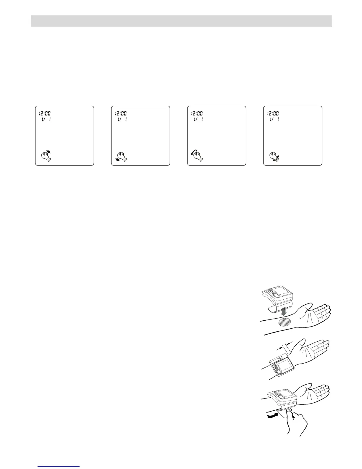 apresentados no visor o ajudam a determinar a altura óptima do pulso para a medição.