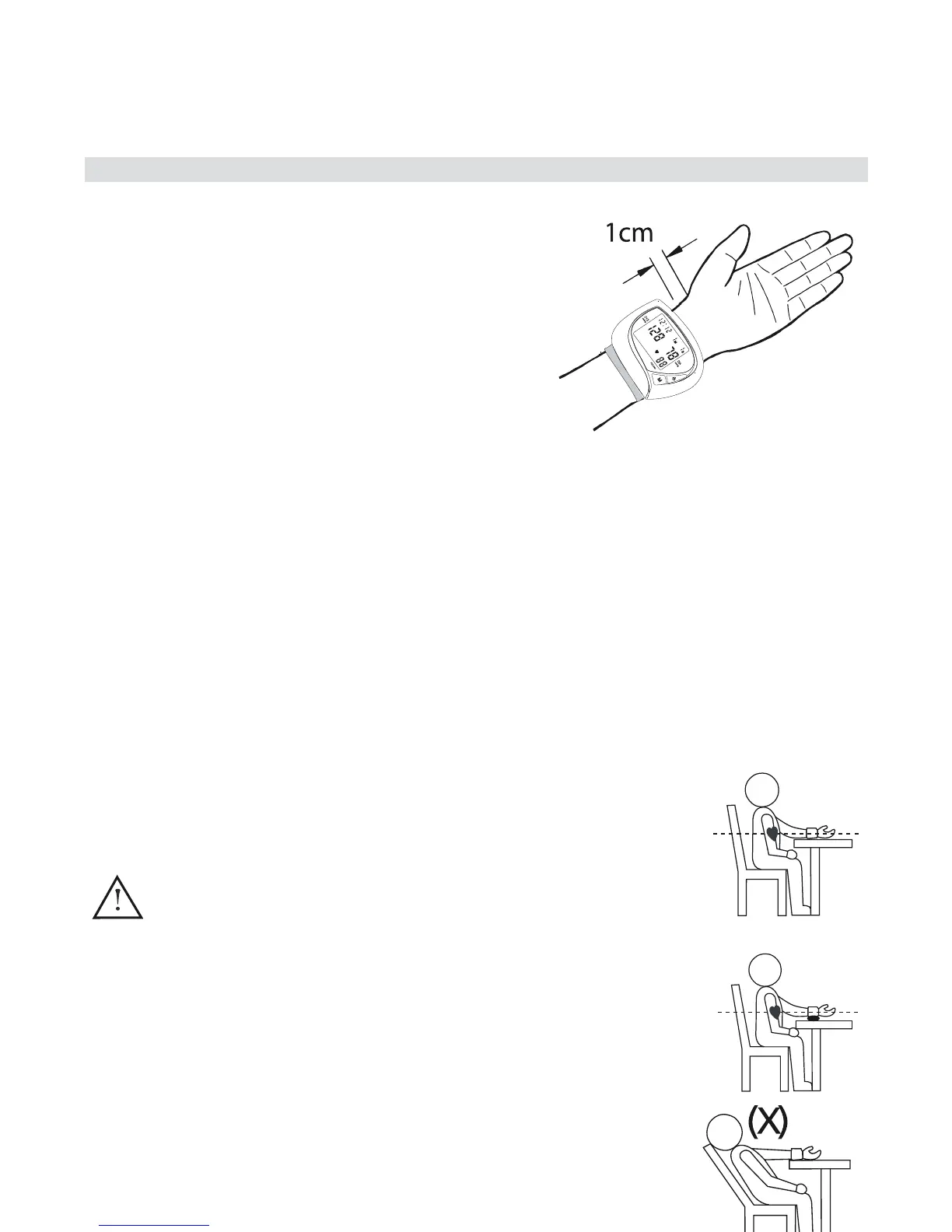Manschette etwa 1 cm von der Handfläche entfernt angelegt wurde, um korrekte
