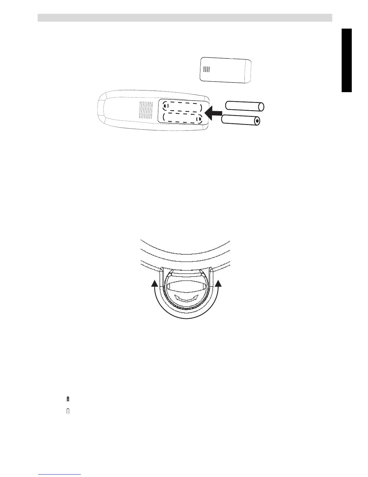 1 Insert 2 rechargeable batteries (AAA) inside the battery compartment of the handset.