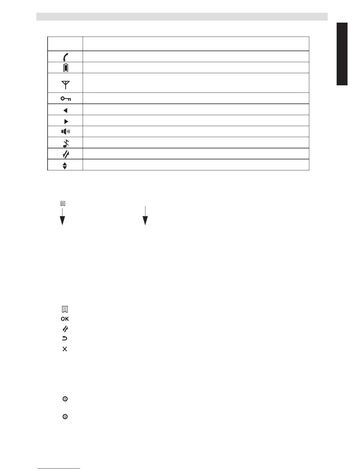 Tekst, der vises på telefonens display, står i højre kolonne i anførselstegn.